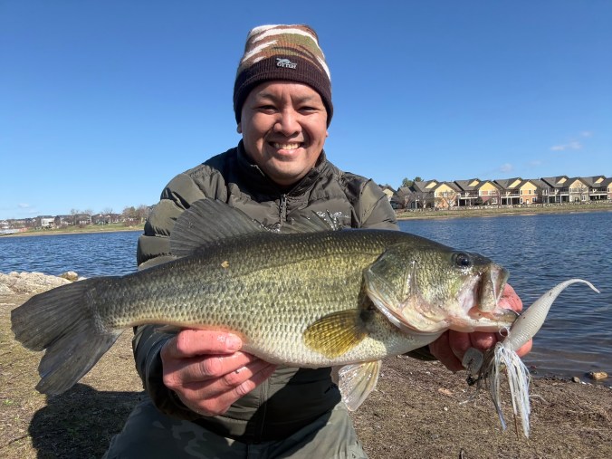In two hours of fishing on a small pond yesterday evening, Josh and I landed 5 bass, all between 2 to 5.4 pounds. A 1/2 oz. white chatterbait and 1/2 oz. Bass Puzzle Grass Piece rigged with a 4.5” X Zone Lures Rally Shad in the pearl silver flake color got it done! The big bass went a whopping 22 inches. A surprise catch for a small pond!