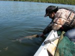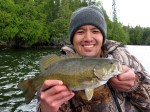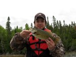 My brother An and I caught and released over 30 football-shaped smallmouth bass, 7 muskies, and several northern pike. The bass in the lake fed well on the perch and every one of them had a huge belly to them! All of our bass weighed between 2.5 to 4 lbs. Largest bass was 16 inches in length. An caught 6 of the 7 muskies, his longest being 37 inches. He was on fire with his famous Mepps spinner. Meals were excellent! Our host Alan would chat with us every evening during dinner to see how we did throughout the day and he would remember what we told him as they put our newsletters every month and it had all the details we mentioned to him. So cool! It was a wonderful trip! The scenery on Highway 502 was amazing as we saw bear and moose crossing the road.