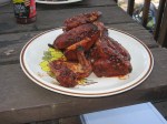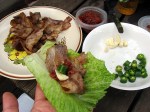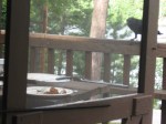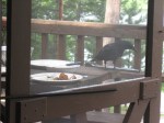 We had a couple of hilarious bird encounters. One of the evenings, we were grilling Korean bacon outside and had just finished our meal to go inside to catch up on the news. A crow lands on our porch and observes the two bacon strips that remained on the plate. The bird was so methodical in getting the strips that we actually caught him in the act of stealing our bacon. (See photos below.) Another story: On the final night, I was in the cabin typing on the computer just a tad after midnight when something swooped over my head from behind. I looked up into the kitchen and saw something flapping and thought it was a big mosquito. Closer observation I realized it was a bat! It swooped again and I dodged underneath the dining table and ran into my bedroom closing the door. Jon saved the night by opening the door to the outside and lead the bat out the door with a broomstick.