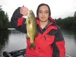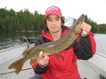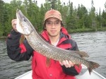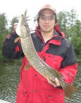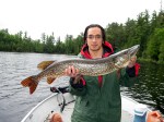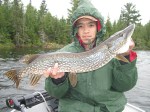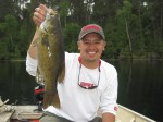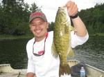 My brother An and I visited Camp Manitou run by Matt Koerbitz to fish for northerns and smallies in Lower Manitou Lake. The fishing was terrific! We caught smallies typically along rocky rubble shorelines and points that drop off gradually into deeper water. The smallies seemed to be everywhere along with northerns. Northerns were all very good size and we found them on main lake rock reefs with cabbage weeds. A few bays had some cabbage weeds and An caught his biggest pike in one of the bays. His big pike measured 38″. We caught several pike between 32″ to 34″. Matt also offered us several portage lakes to fish and we were in for a treat! We fished Mister Lake, Dogfly Lake, and Gates Lake. Dogfly had to be our favorite. One stretch of Dogfly Lake we caught so many smallies and pike we lost count. The bite was best when we had slight wind. The calm, sunny day it was tougher to catch them.