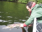 This trip meant extra special to me. Just before dinner my brother and I decided to venture into a small bay and fish for northern pike on Lower Manitou Lake. I was casting a Mepps #5 Aglia over submerged cabbage when the musky hit my spinner so hard the water boiled around it. I set the hook and connected. I could feel my heart pulse racing. The fish swam and stayed deep for a good couple minutes. I glanced over at our small bass net and thought my goodness there was no way we could land this beast. After about a three minute battle and some big runs underneath that had me circling the boat the fish slowly came to boatside. An got to the edge, reached over and with his arms cradled the monster into the boat. We laughed in joy and I was almost in tears. The fish measured 50-1/4″! I released the fish after a few quick photos. It was a memorable day!