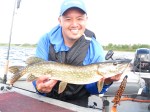 Weather was excellent for the most part. The first and second to last day was picture-perfect weatherwise with calm sunny skies. Wind was the biggest factor on where to fish but the west end of Kabekona Bay always seems to be easiest to fish. Lots of northerns were caught as well as largemouth. From the dock, perch, sunnies, and largemouth were caught. Our son Joshua loved the playground, dribbling the basketball, and going into the lodge. Stacey loved the paddle board and took it out every morning and paddled around the shoreline. We celebrated our 3rd Anniversary while we were there and went out to eat at Village Square Cafe in Walker. We visited town another day and I got to visit Reed’s Sporting Goods and picked up a new fishing lure and a pair of winter gloves.