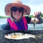 Weather for the week seemed cooler for the time of year, low-50s to mid-70s. Wind speed was high during the day and changed direction constantly every day. The lake was ultra clear and with my Amphibia Eclipse sunglasses I was able to see giant smallmouth bass swimming and following my lure to boatside. The smallmouth fishing was fantastic! Fish were in post-spawn. Most were caught down 8-10 feet on cranks, tubes, and drop-shots. In the mornings, they were typically shallow and they would hammer topwaters like a Pop-R. Hard to beat a topwater bite!