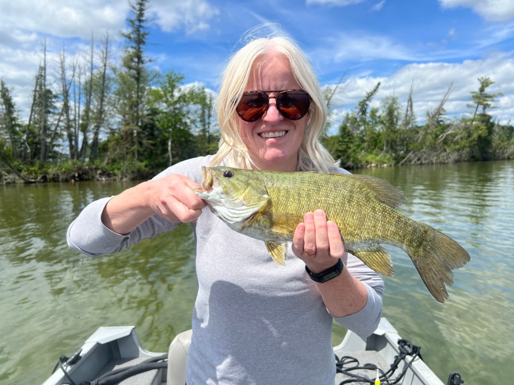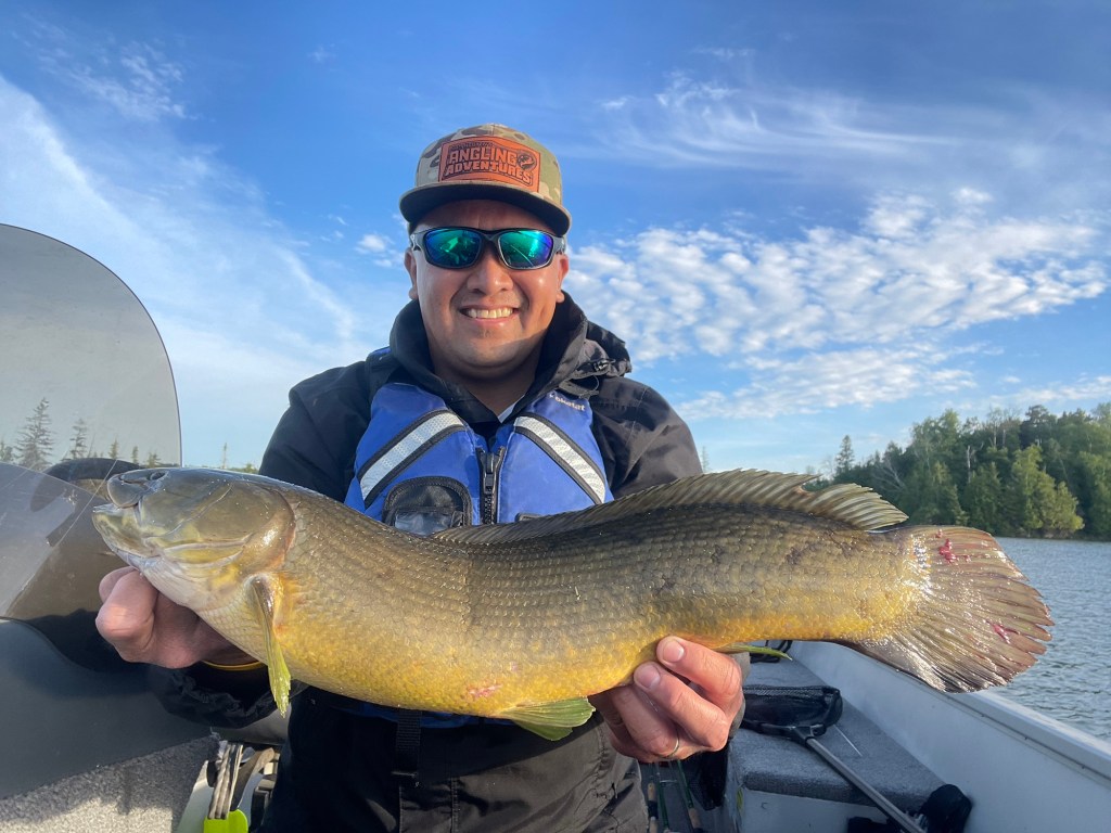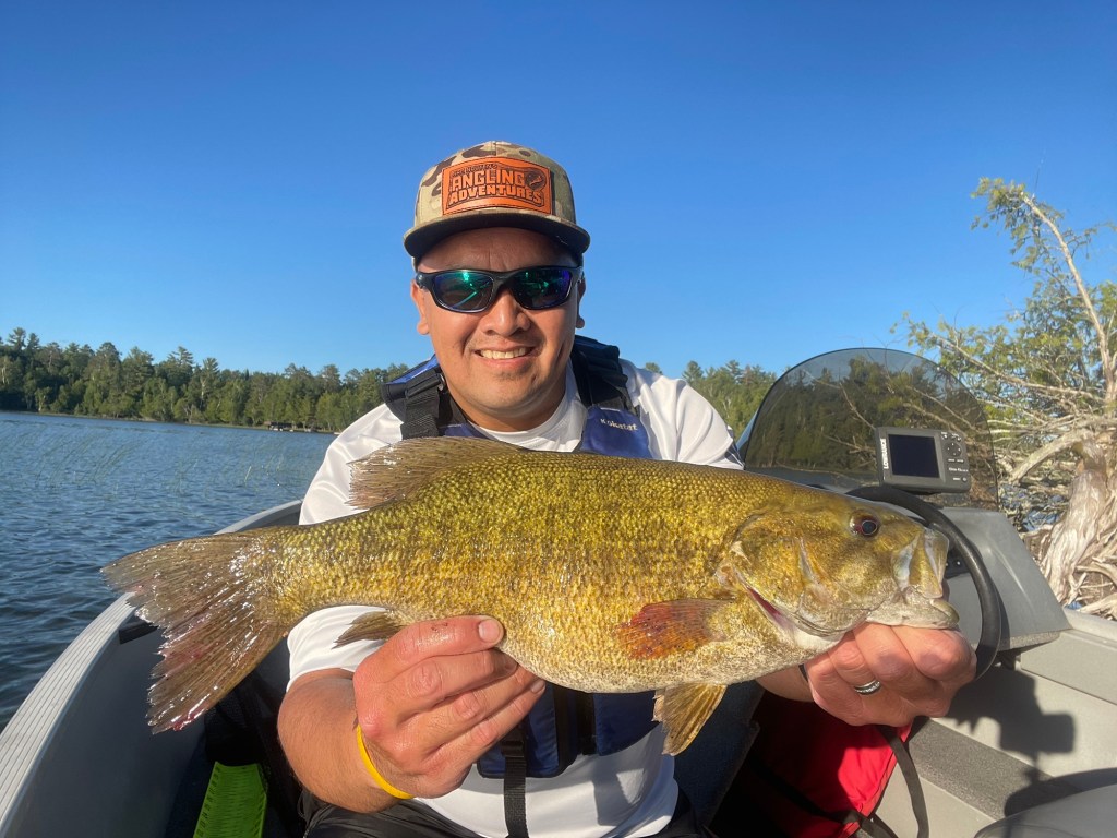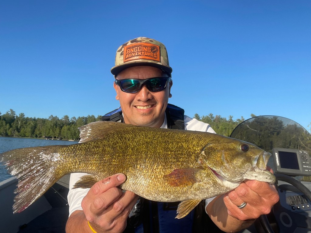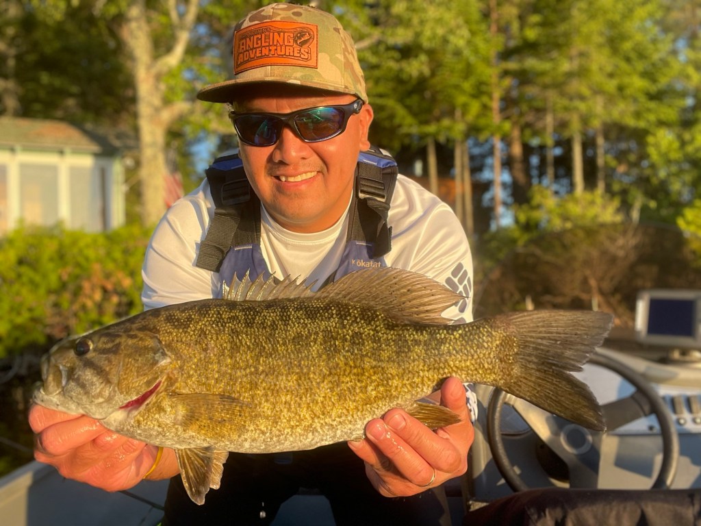 Smallmouth and bowfin action was super! The mayfly hatch was starting to bloom and the hot lure was the 5/8 oz. Megabass Sleeper Craw. Jigged and worked slow inside the reeds drove bowfin and smallmouth absolutely crazy! I caught my biggest smallmouth at 21″ (5 lbs., 8 oz.) beast and another 20″ smallmouth (4 lbs., 5 oz.)! Several bass in the 16″ to 18.5″ sizes were also caught.