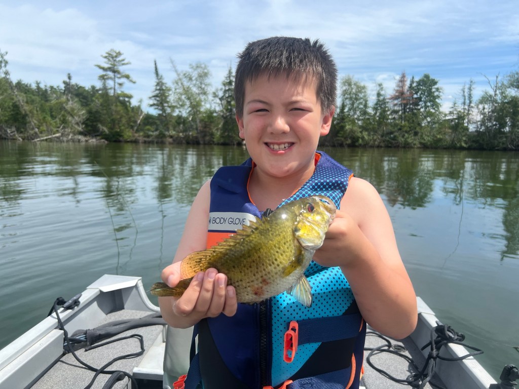 We all had fun participated in creating our own tie dye t-shirts! All of our shirts turned out great but I think mine was the best. 🙂 I spent most mornings and evenings fishing alone. Stacey and Joshua spent a few days in the water swimming, diving feet first, paddle boarding, and venturing from one water toy to the next. The weather was cooler for most of the week but Thursday was the warmest in the upper 70’s high. The lodge made and served fresh donuts on Tuesday and were delivered right away in the morning. We ended up ordering 2 large bags of donuts and a complementary kid size. Ice cream in the lodge every day too. Joshua and I played billiards. Our dog Charlie enjoyed his stay as well with a couple of swims in the lake and boat rides to highlight his week. We checked out and went home on Saturday as there was rain the forecast.
