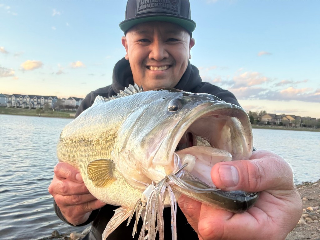 After work yesterday, I stopped over at one of my favorite ponds for a little fishing. Shortly before sunset, this 21.5” largie smashed my 1/2 oz. Grass Piece rigged with an X Zone Lures Rally Shad! The fish tipped the scales at 5.6 lbs.